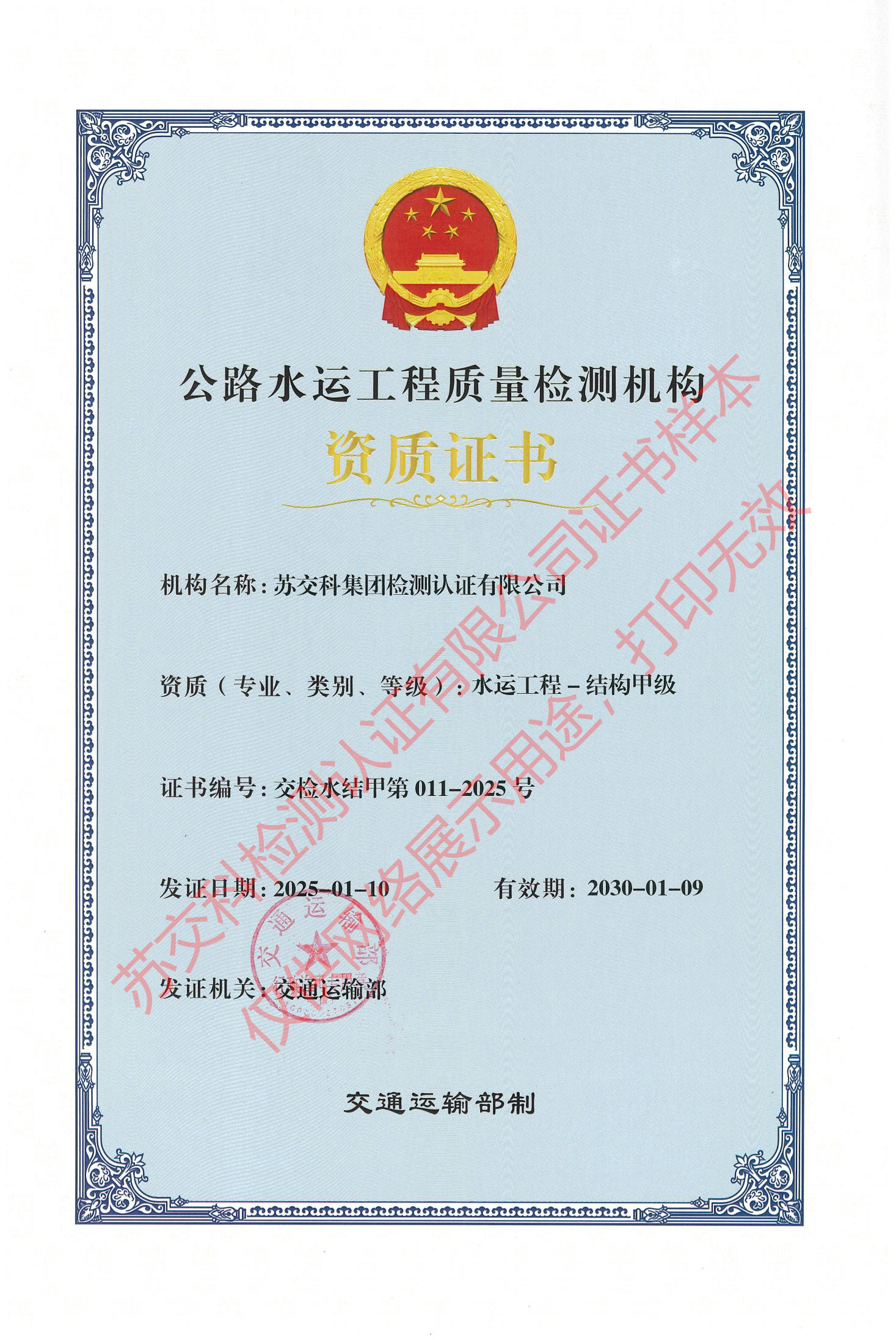 蘇交科檢測(cè)認(rèn)證水運(yùn)結(jié)構(gòu)甲級(jí)