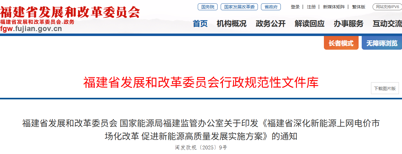 福建省發(fā)布深化新能源上網(wǎng)電價(jià)市場(chǎng)化改革促進(jìn)新能源高質(zhì)量發(fā)展實(shí)施方案